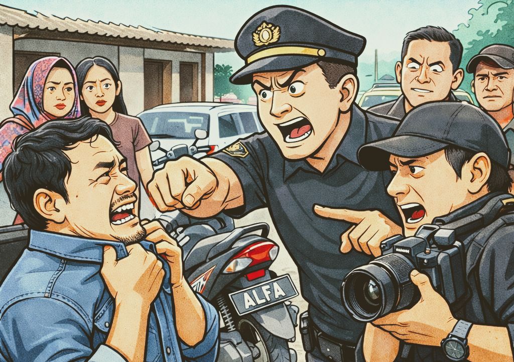 Wartawan Nino Ninmusu yang refleks dengan dua pukulan tersebut seketika mengenai helm yang digunakan. Tak berhenti disitu, ia pun menyita identitas Wartawan Nino Ninmusu berupa BPJS, sembari memastikan daerah asal hingga tempat tinggal wartawan.